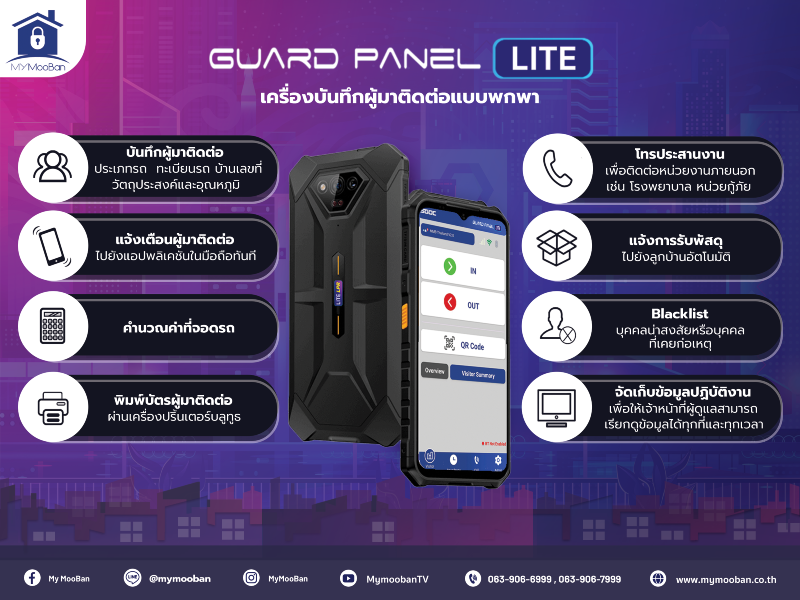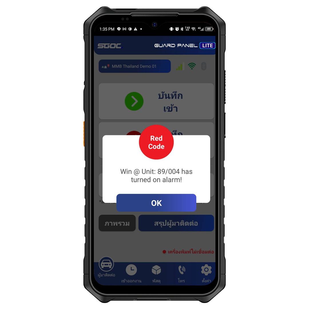 ลูกบ้านสามารถแจ้งเหตุฉุกเฉินมายังเครื่องบันทึกผู้มาติดต่อ